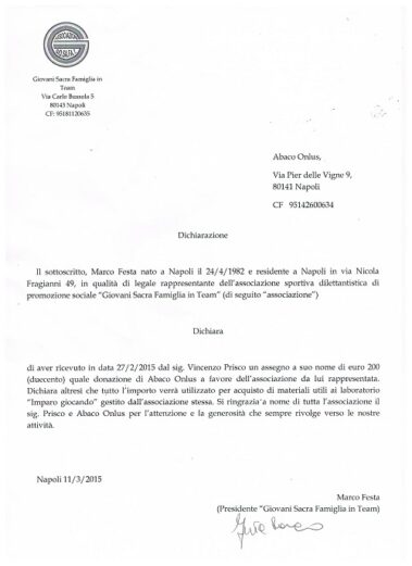 Contributo per Associazione Giosafat