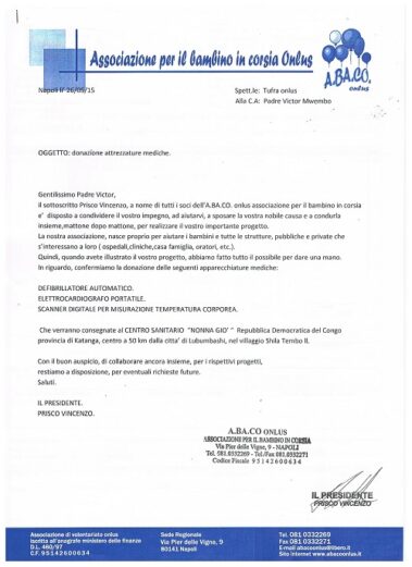 Donazione per Ambulatorio Nonna Giò Congo